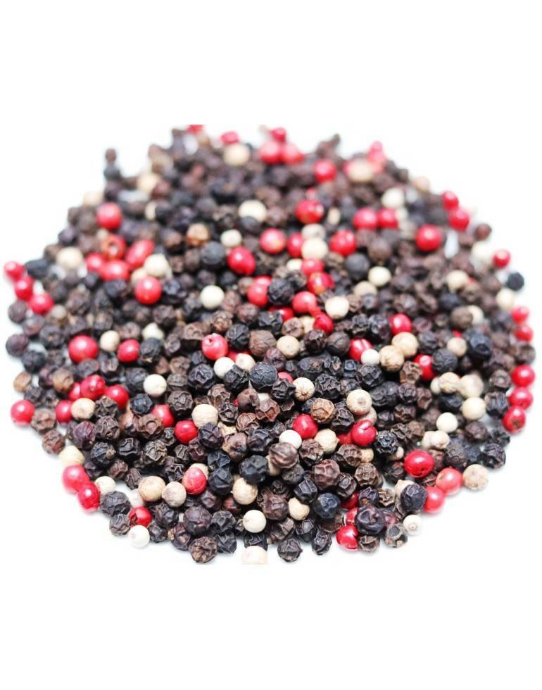Le mélange 3 baies est une association équilibrée de poivre noir, poivre blanc et baies roses, offrant une palette aromatique riche et harmonieuse. Le poivre noir apporte puissance et chaleur, le poivre blanc révèle des notes plus subtiles et raffinées, tandis que la baie rose ajoute une touche légèrement sucrée et florale. Ce mélange polyvalent sublime aussi bien les viandes, poissons, légumes que les sauces et marinades, en rehaussant les saveurs avec finesse et complexité.