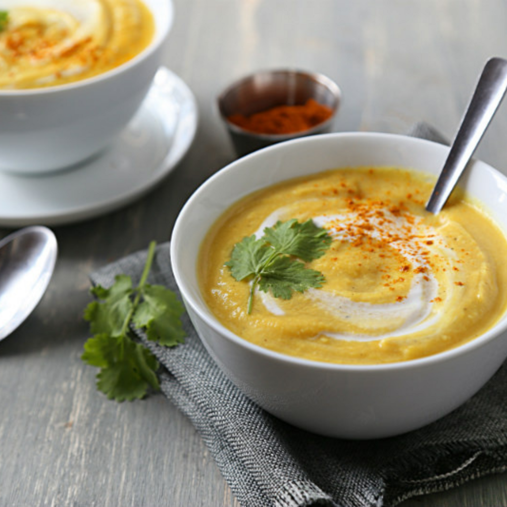Mixez la soupe et servez avec une touche de yaourt nature.